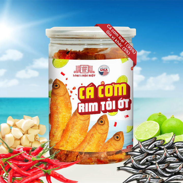 – CÁ CƠM RIM TỎI ỚT: Cá cơm rim tỏi ớt loại 1 của Làng Chài Xưa rất thơm ngon, được tẩm ướp và rim tỏi ớt đặc biệt khiến bạn muốn ăn mãi không ngừng.