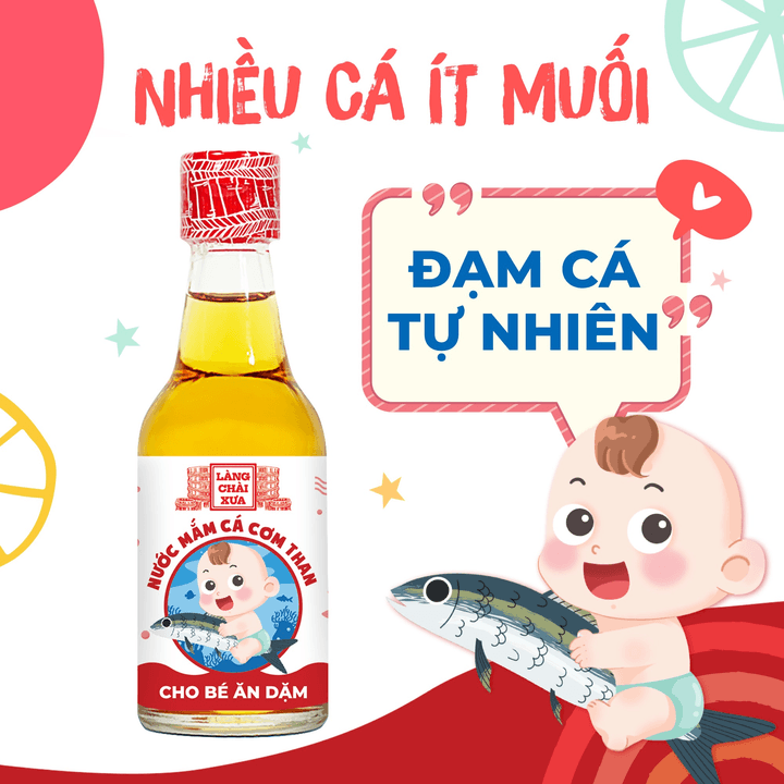 Nước mắm Cá Cơm Than Làng Chài Xưa cho bé ăn dặm từ 6 tháng tuổi, an toàn, nhiều cá ít muối chứa nhiều vitamin 60ml/chai